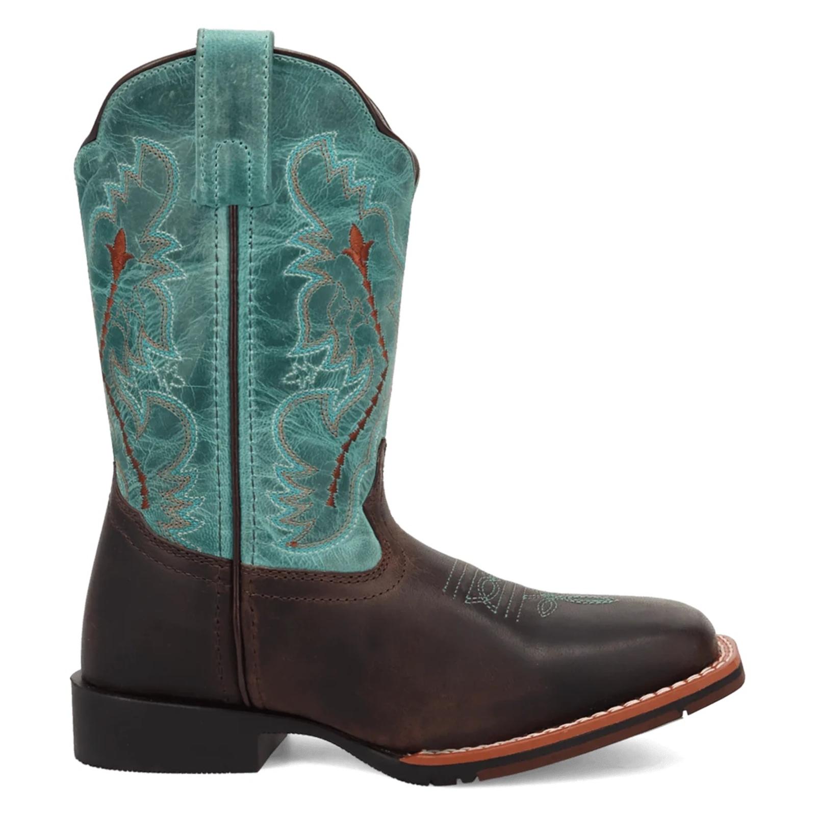 As sweet as a honeysuckle, the Salina Cowgirl boot is made for adventure! With an 8-inch shaft, broad square toe, and stockman heel, this boot combines style and durability. The cushion comfort insole and rubber outsole keep little feet comfortable and steady all day long, perfect for the toughest cowgirls!